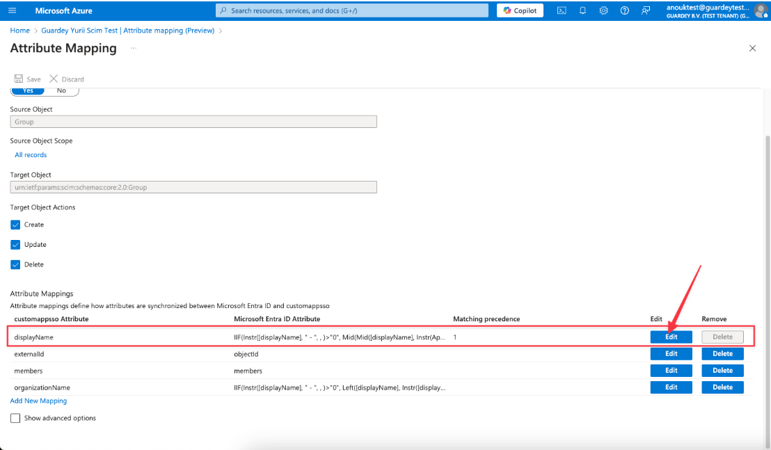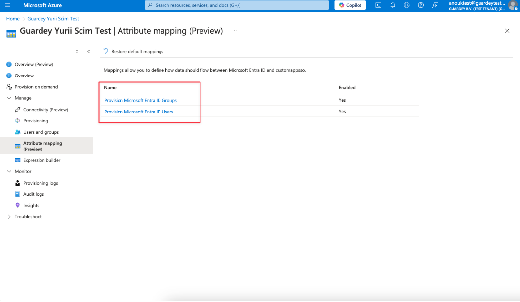 Entra portal → Enterprise applications → Your Guardey app → Provisioning → Attribute mapping