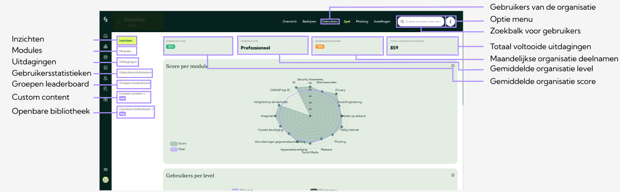 In dit portaal kun je alle gebruikers, instellingen en statistieken van jouw organisatie beheren.